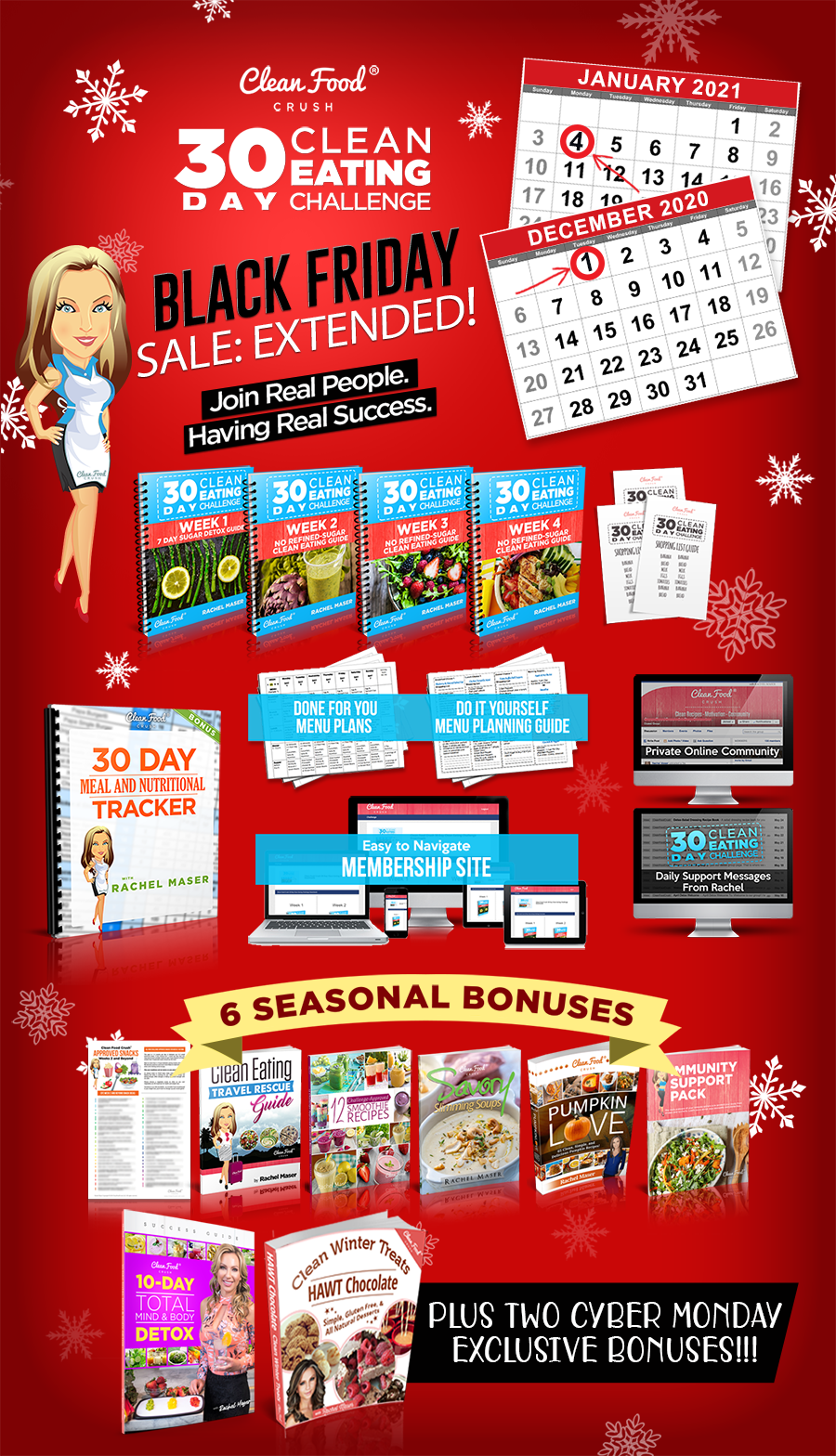 When you order today, you receive the December 1st 30 Day Clean Eating Challenge AND access to January's Challenge group too!
