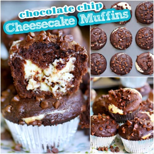 Breakfast has never been this decadent or delicious! Chocolate chip muffins stuffed with a creamy cheesecake filling are a chocolate lover's dream come true!