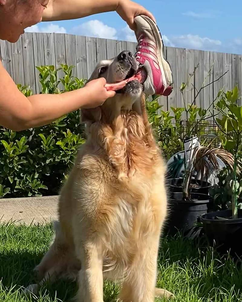 Behind The Scenes of today's Life of Dozer photo!!! Battling it out of his mouth (I lost).