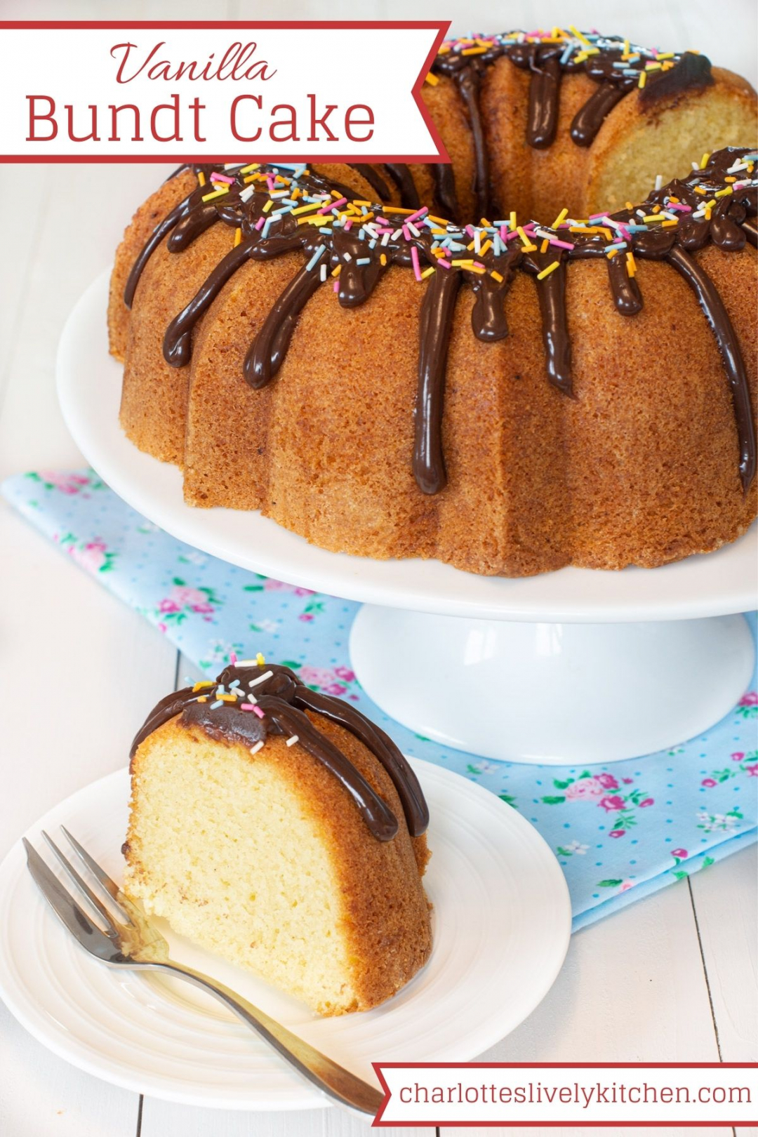 Not one, but two new recipes from me today - Vanilla Bundt Cake (topped with milk chocolate ganache and sprinkles) and Homemade Cake Release (to make sure that bundt cake doesn't get stuck in the tin!).