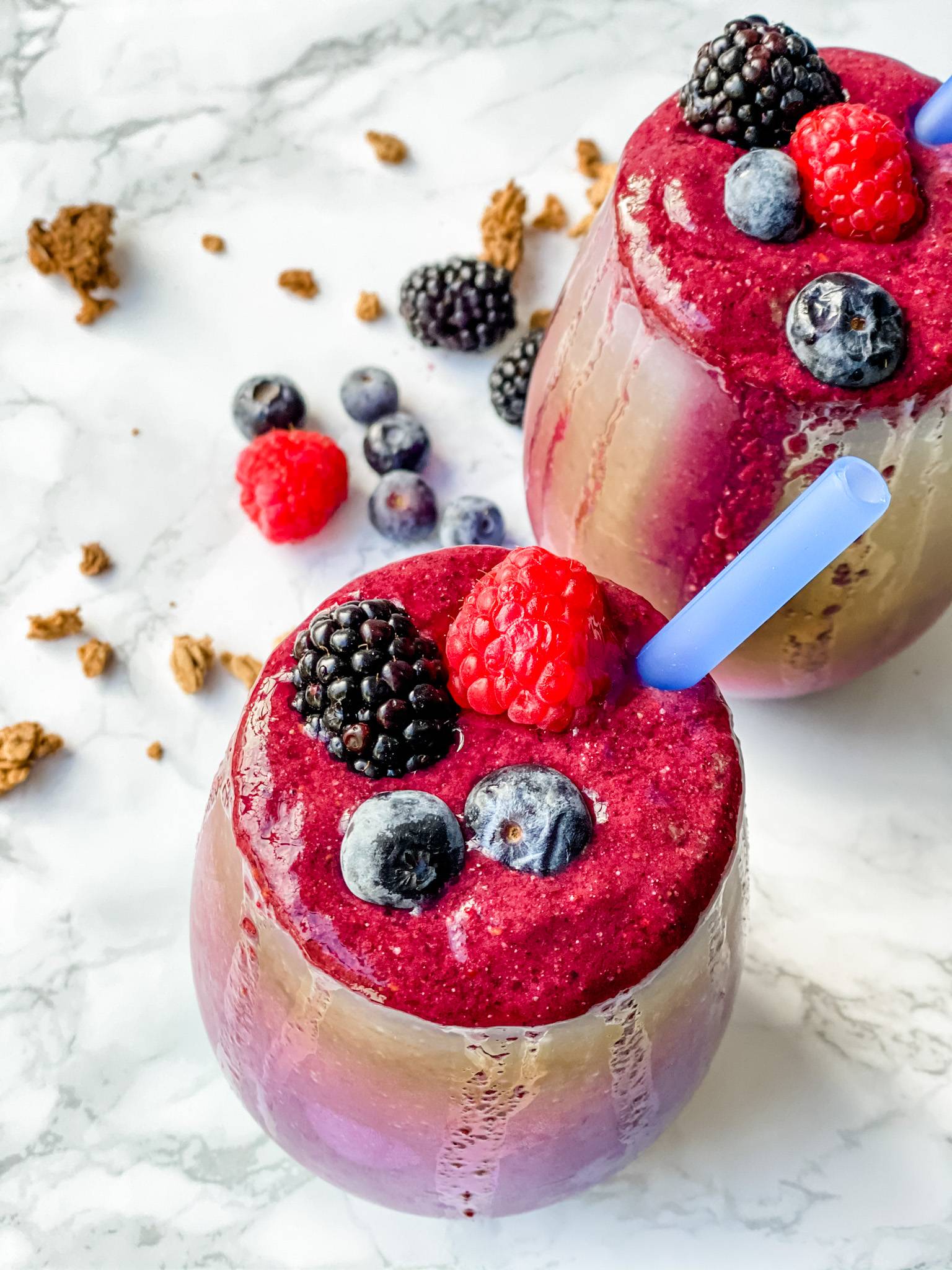 Fruit smoothies can still pack in a good nutritional punch with superfoods. You can blend in chia seeds, hemp hearts, collagen, or even some coconut oil.