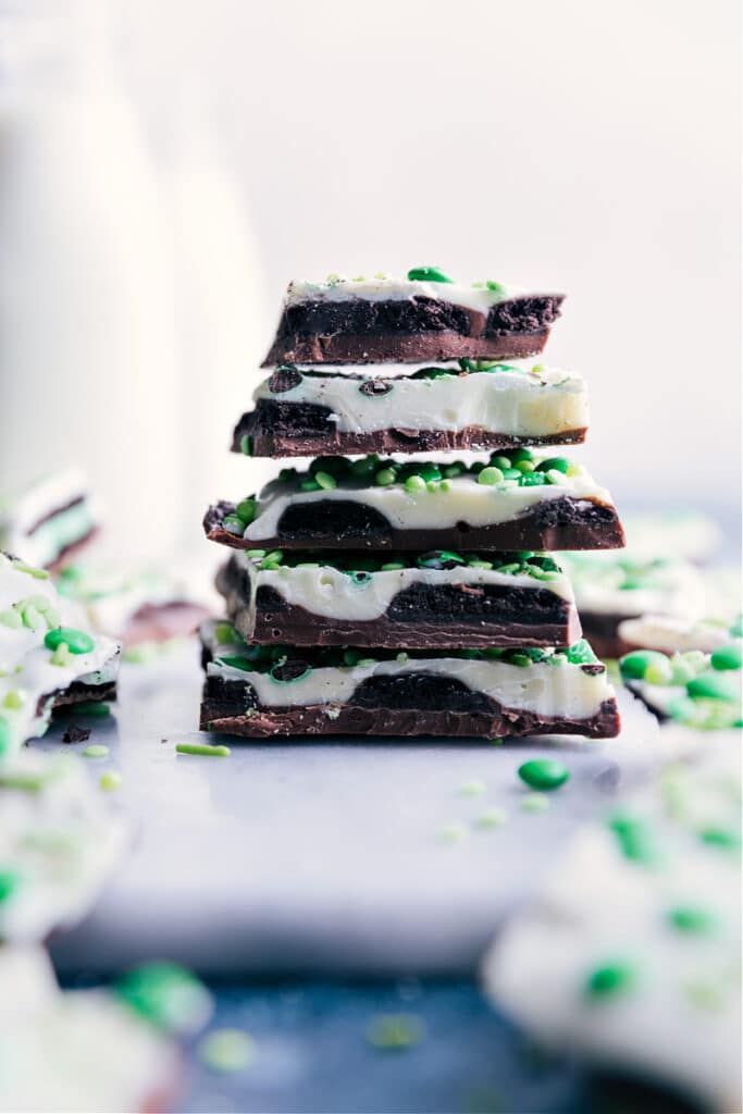 Only three essential ingredients in this Mint Chocolate Bark! This bark starts with a milk chocolate base and is topped with Mint Oreo® cookies or Grasshopper® cookies then covered in white chocolate. Add some festive sprinkles and miniature M&Ms if desired. Looking for some more fun St. Patrick's Day treats? Here's a compilation of 4 […]
