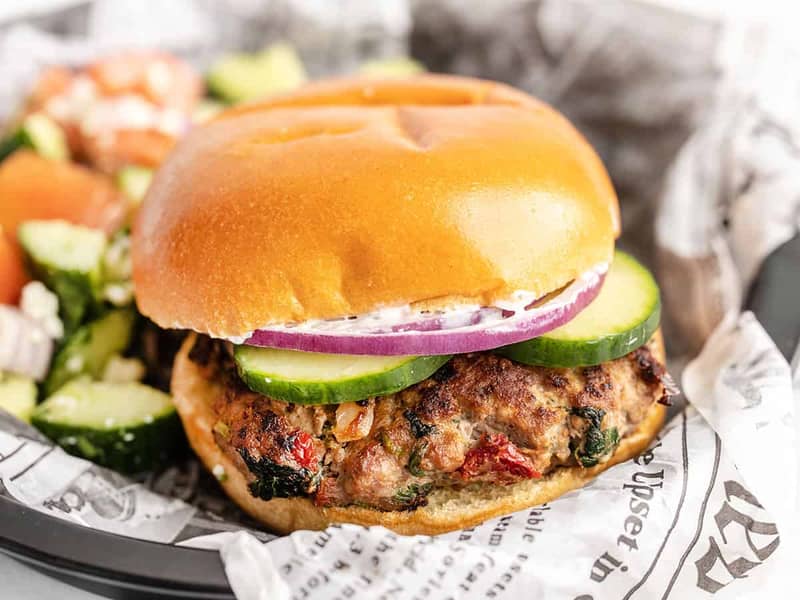 Ground turkey can be kind of, well, boring if you don't dress it up right. That's why for these Mediterranean Turkey Burgers I added fun add-ins to the burger patty for maximum flavor and color. And instead of the ketchup and mustard treatment, these juicy burgers get a homemade lemon dill yogurt sauce, crunchy slices of cucumber, and a few slivers of red onion. If you're looking to change up your burger game, these Mediterranean Turkey Burgers are it! [Read more...]