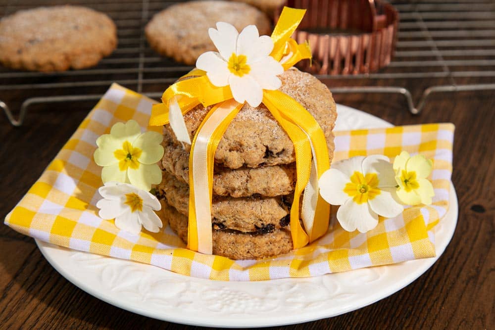These traditional Easter Biscuits, studded with dried fruit and flavoured with warm spices, are a lovely alternative to all that chocolate indulgence! They are easy to bake with kids, make lovely Easter gifts and are totally vegan!