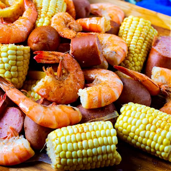 Slow Cooker Low Country Boil is full of potatoes, corn, sausage and shrimp flavored with lots of spice. So easy and convenient to make in a slow cooker.