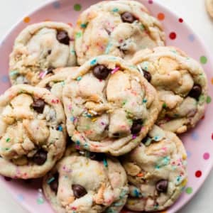 Inspired by our #1 cookie recipe: cake batter chocolate chip cookies.