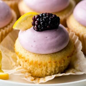 Lemon Cupcakes with Blackberry Cream Cheese Frosting
