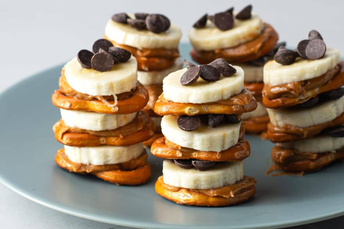 Pretzels, sunbutter, banana, and chocolate chips team up to create one yummy and energy-boosting snack! They can crush sweet and salty cravings at the same time!