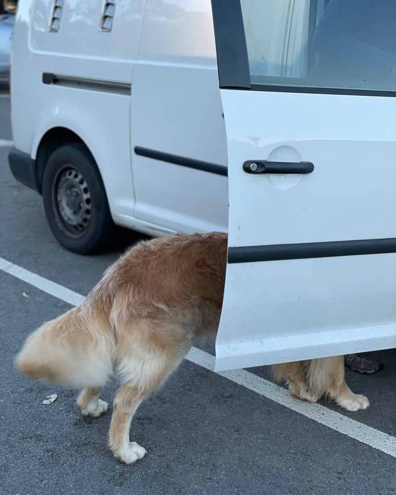 Whenever you see his rear half, always know his other half is up to no good... (In this case, scavenging for treats!!)