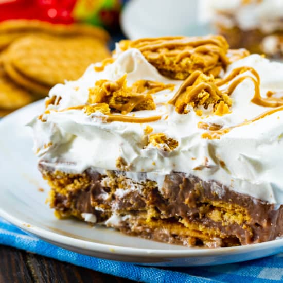 Nutter Butter Chocolate Icebox Cake is made up of delicious layers of chocolate pudding and Nutter Butter cookies with Cool Whip on top. This no-bake dessert is perfectly creamy.