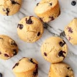 We're head over heels for these healthy blueberry muffins. Moist, fluffy, and studded with jammy berries, they're a delicious quick breakfast or snack!