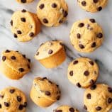These chocolate chip muffins are my favorite breakfast treat! Moist, puffy, and lightly sweet, they're delicious with a cup of coffee or tea.
