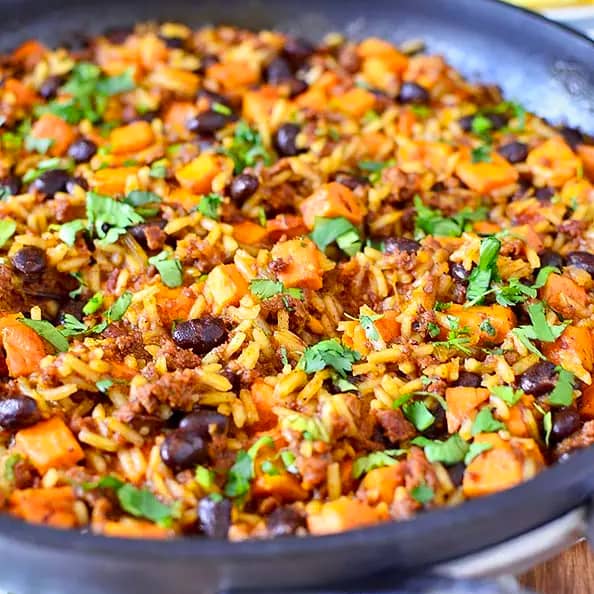 | Chorizo Sweet Potato Black Bean Skillet |