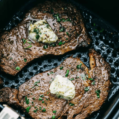 1) Perfect Air Fryer Steak with Garlic Herb Butter
