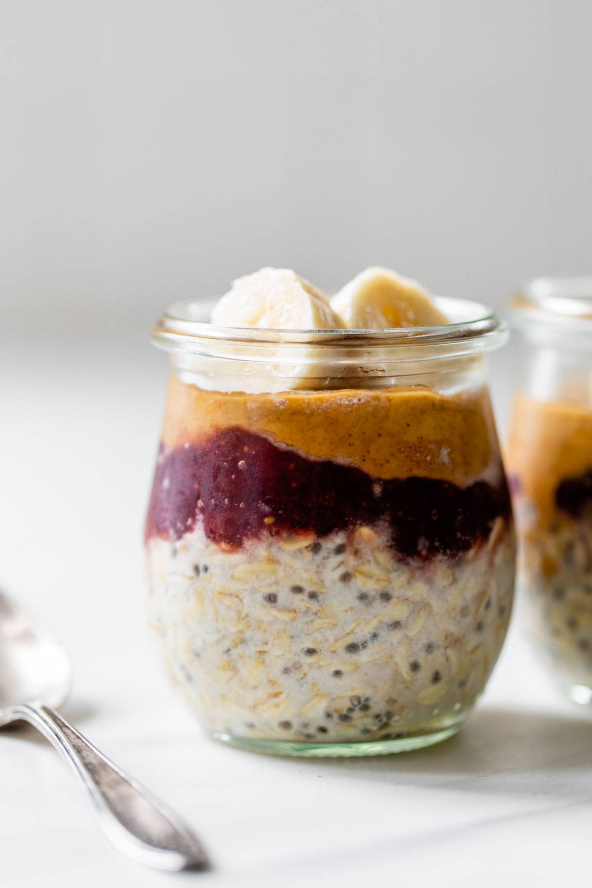 ....basically your favorite childhood sandwich, but in healthy breakfast form! Think: rolled oats, your choice of milk, chia seeds, and of course, peanut butter and jelly. It's delicious, nutritious and can (and should!) be prepped the night before so breakfast is ready to go when you wake up in the morning!