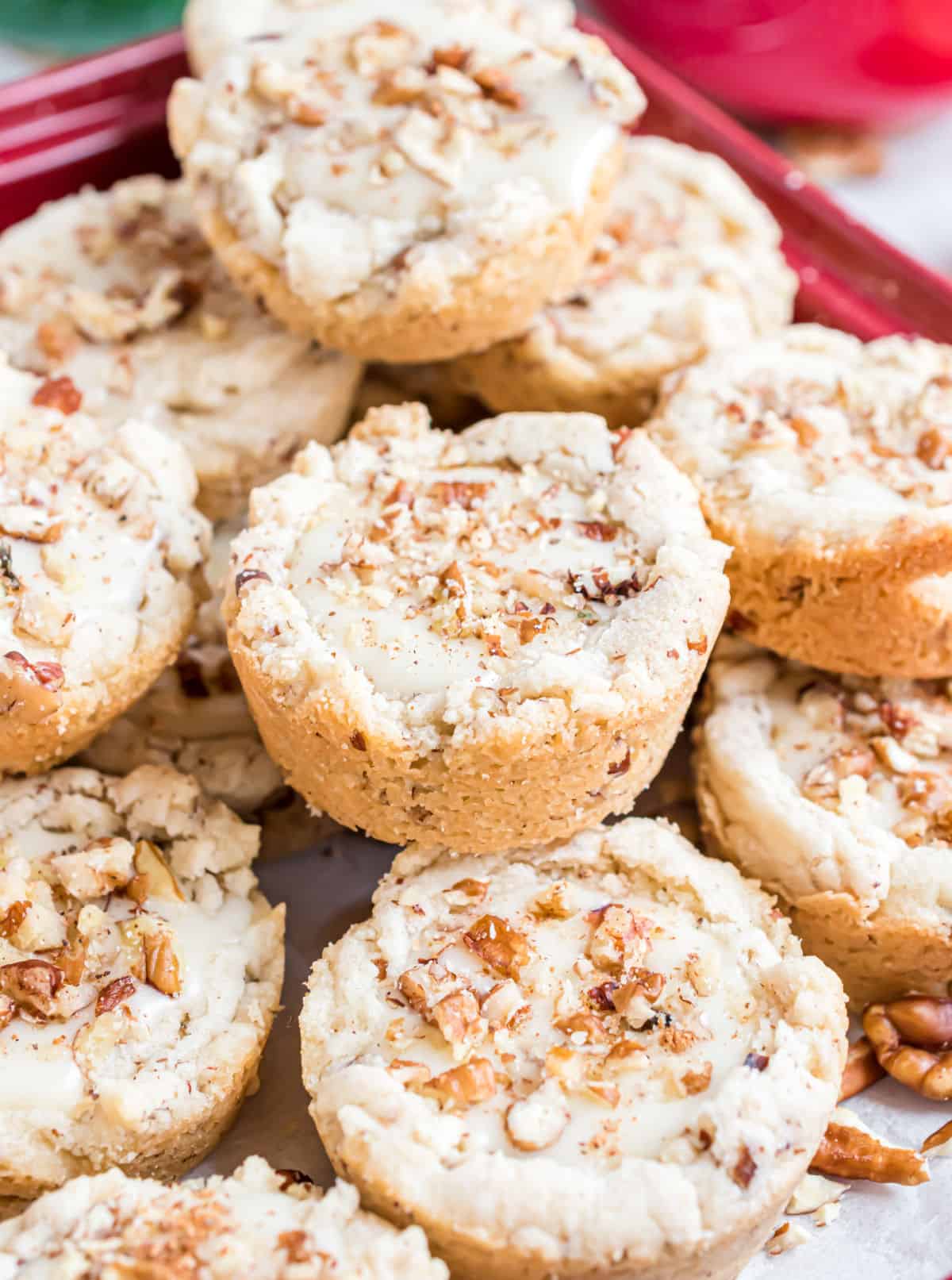 Pecan Eggnog Cookies will be all the rage at your next cookie exchange. Delicious, melt-in-your-mouth cookie cups have eggnog and pecans baked into every bite!