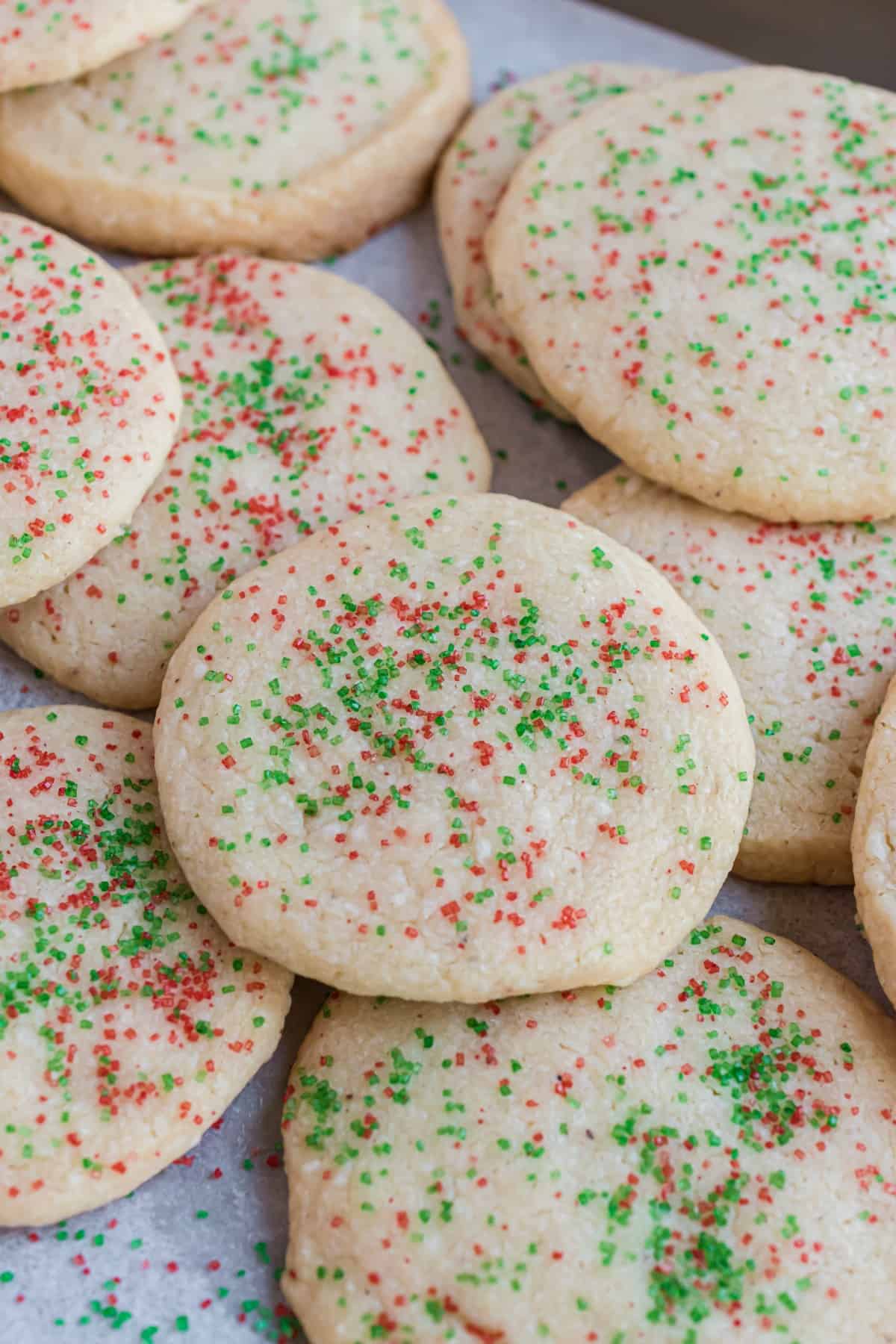 Jingles Cookies: sweet shortbread cookies with anise extract. You'll love these melt in your mouth Christmas cookies covered in red and green sprinkled!