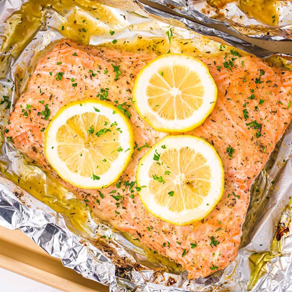 Amazing Baked Salmon In Foil recipe that is moist, flavorful and ready in under 30 minutes! Just 5 minutes to prep and clean up is a breeze with this easy salmon recipe! The simple foil packets lock in all the flavor and moisture – so good!