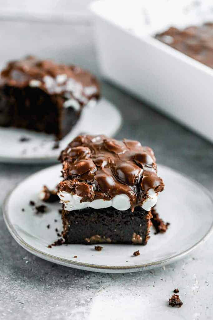 A homemade chocolate cake with melted marshmallows and warm chocolate frosting poured on top. Trust me, it's as delicious as it sounds!