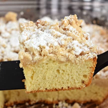 Moist New York style Crumb Cake with a delicious, thick brown sugar topping! Better than any bakery, you'll fall in love with this classic breakfast cake recipe!