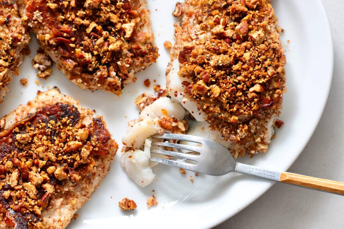 If you're in need of a spring dinner with a fancy flair, keep this crunchy and tender pecan-crusted fish in mind. It goes great with a side of rice and veggies, but we love adding it on top of a fresh, fruit-filled salad, too!