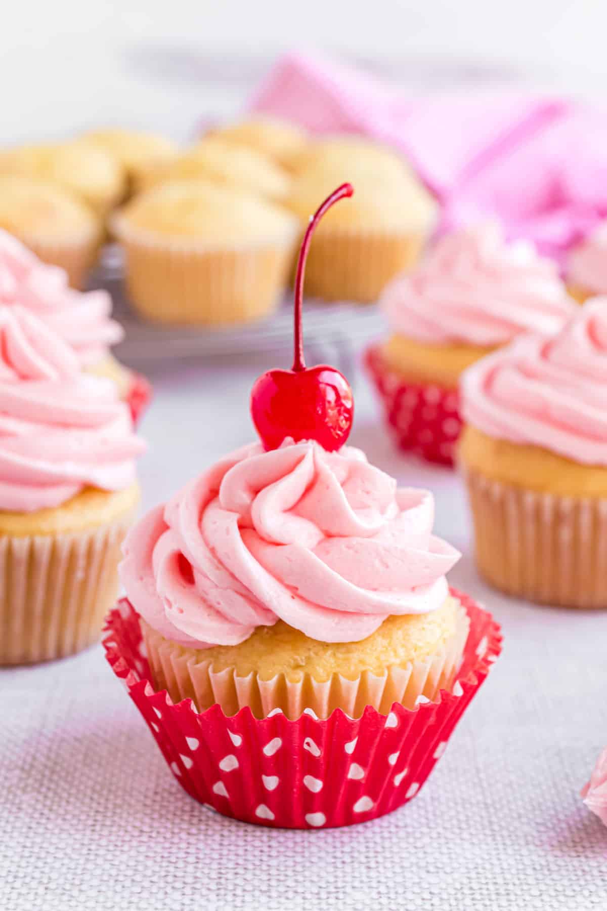 Cherry Almond Cupcakes have a rich almond flavor and are topped with fluffy cherry buttercream frosting! Take a break from the chocolate desserts and give these cherry almond cupcakes a try instead.