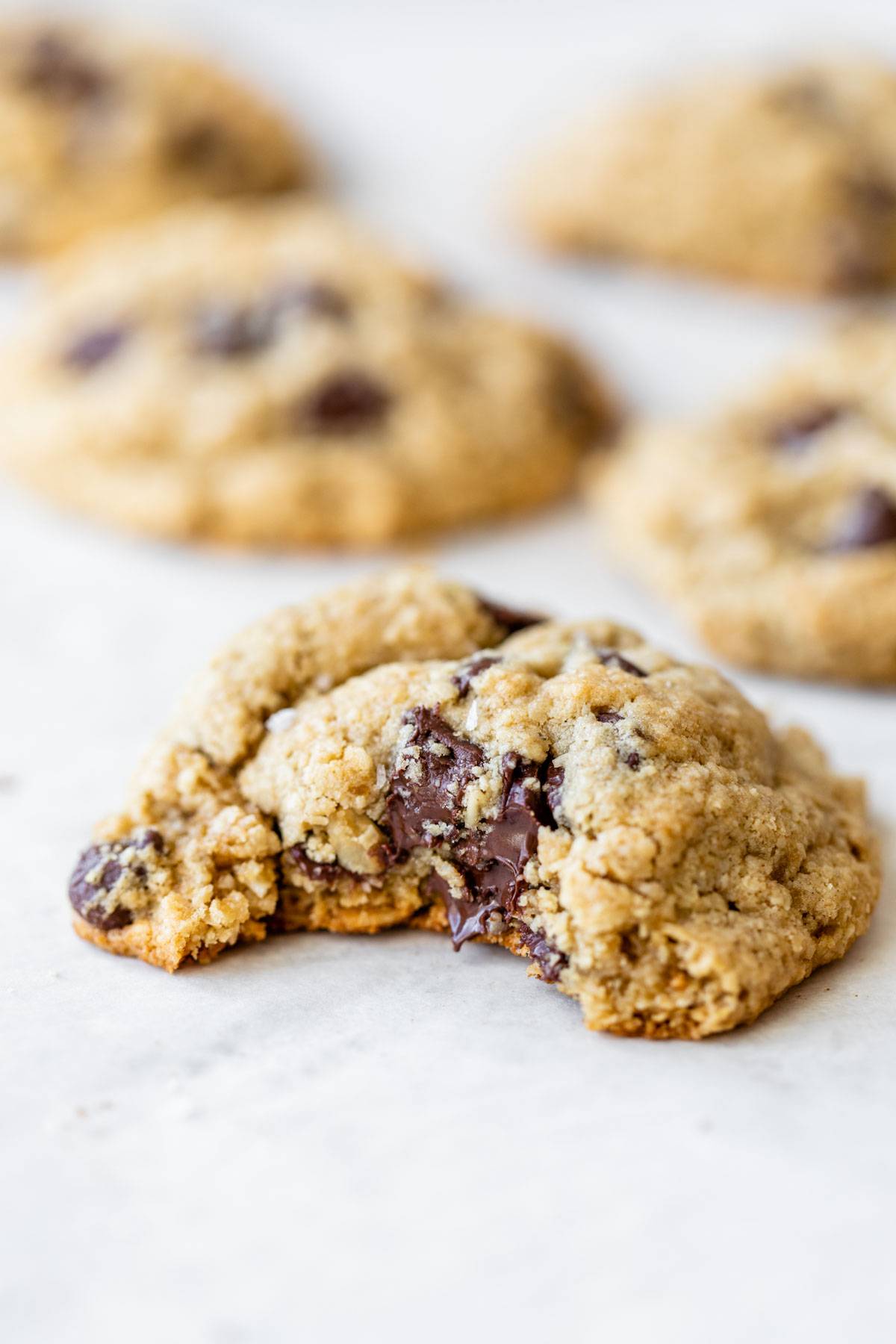 Yesterday I shared how to make oat flour, so today I thought I'd share these easy Oat Flour Cookies! They're soft and chewy and made for ALL eaters -- gluten free, nut-free and vegan, too -- and they're of course filled with chocolate chips. Think of them as a combination between a classic chocolate chip cookie and oatmeal cookies. Basically, really delicious.