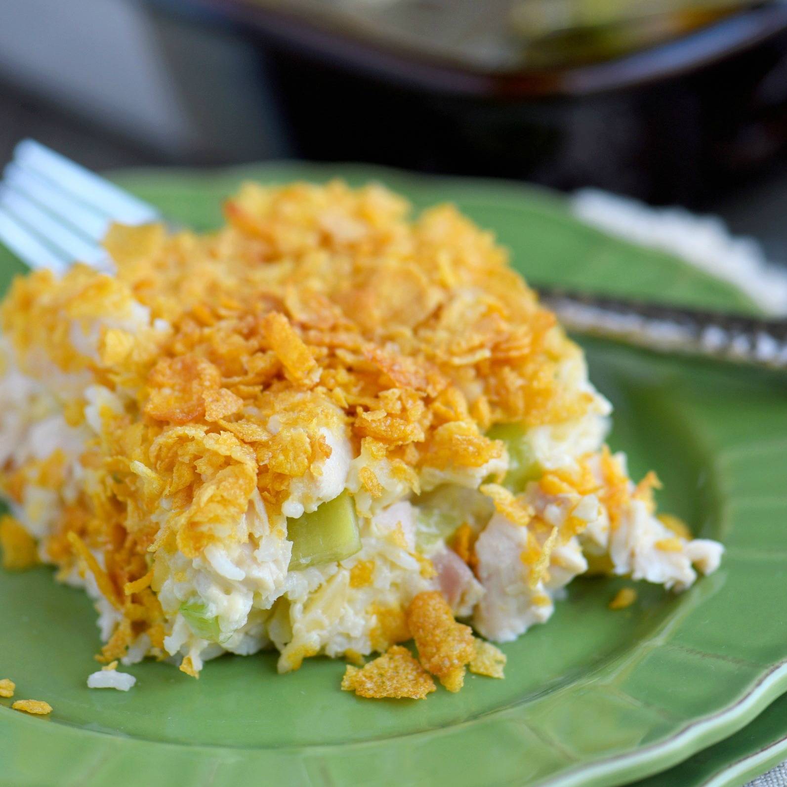 Rotisserie Chicken and Rice Casserole is an incredibly easy and delicious dinner that is perfect for busy weeknights! Comfort food FAST! This easy casserole is made with rotisserie chicken, rice, almonds, celery and more! A family favorite that I've been making for decades!