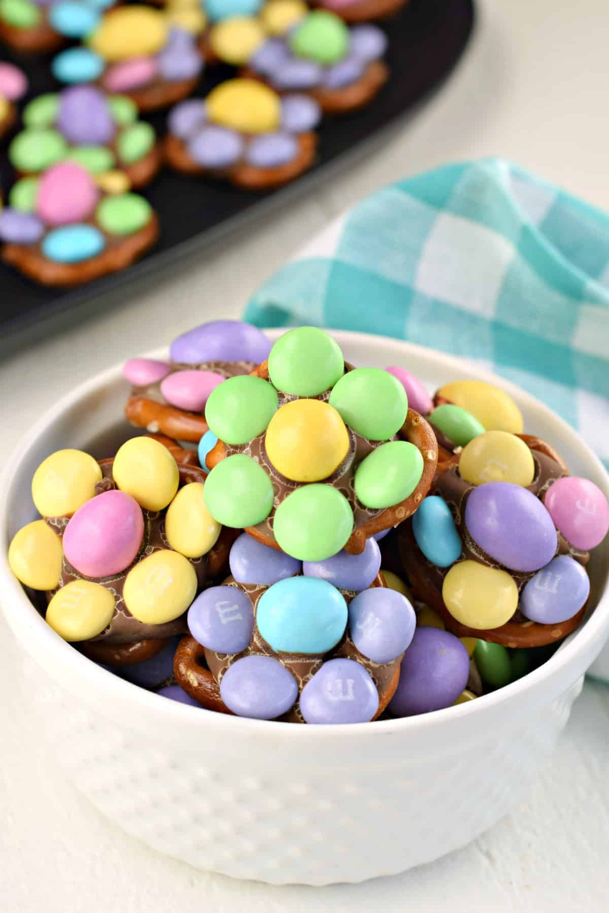 Make these adorable Flower Pretzel Candy Bites this Easter! A salty sweet homemade Easter candy that's full of color and cheer, just in time for spring.