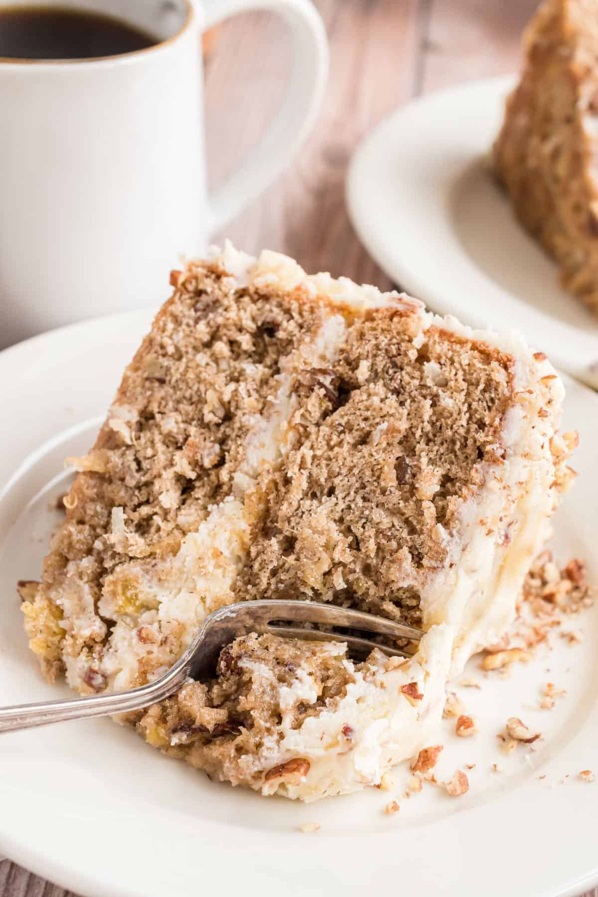 Hummingbird Cake is a moist layer cake filled with pineapple, pecans and coconut. Perfectly sweet and spiced with cinnamon, this classic southern dessert keeps everyone coming back for another slice!