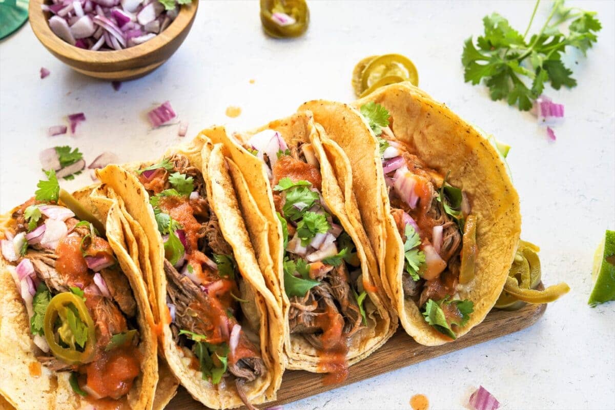 These tender shredded beef tacos are similar to what you'd find at your local Mexican restaurant, only better! They're packed with authentic flavor and made with healthy ingredients.