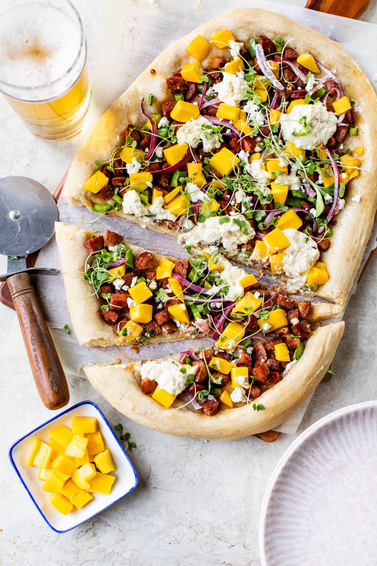 I know "pizza Friday" is a thing, but I feel like we need to make pizza Monday happen. ...mostly because I'm currently craving this Chorizo Mango Pizza! It uses cooked chorizo as a base and is topped with mango, red onion and burrata cheese -- a delicious salty/sweet combo.