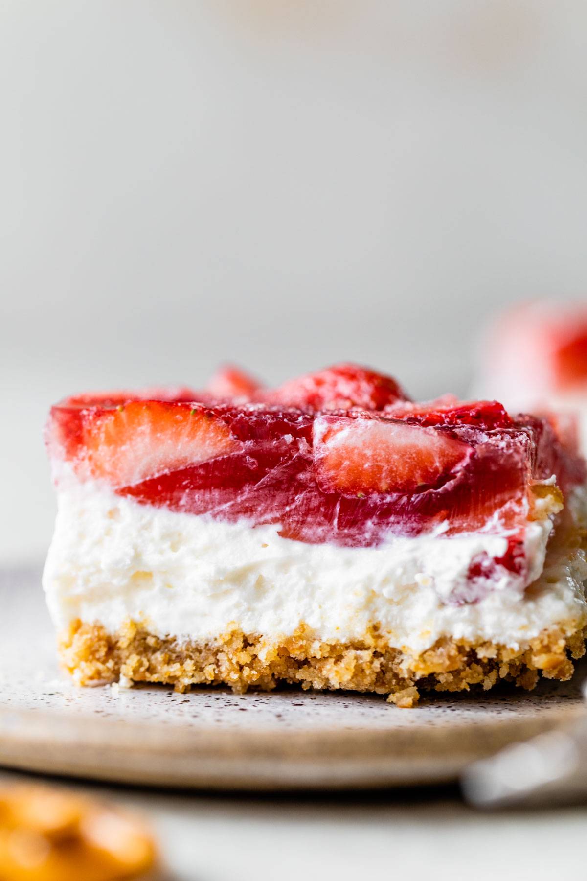 Memorial Day is right around the corner, so I figured now would be a good time to share my recipe for Strawberry Pretzel Salad. Though my recipe is healthier, it's definitely not HEALTHY. Strawberry pretzel salad reminds me of my childhood: buttery pretzel crust, topped with a cheesecake layer and last, strawberry jello. This recipe uses homemade strawberry jello so it's a little less sweet and more fresh tasting. Give it a try and let me know what you think!