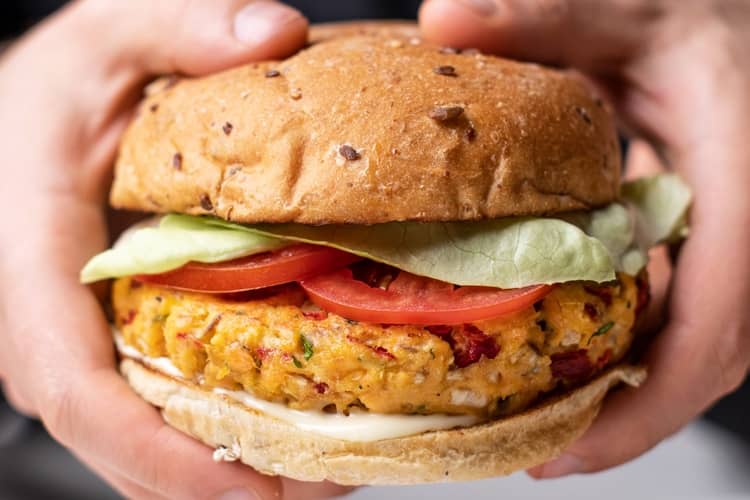 | Spicy Black Bean and Sweet Potato Burger with Avocado Sauce |
