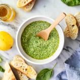 Pesto is one of my favorite condiments to keep on hand. Try these easy, fun pesto recipe variations to brighten pasta, salads, roasted veggies & more!