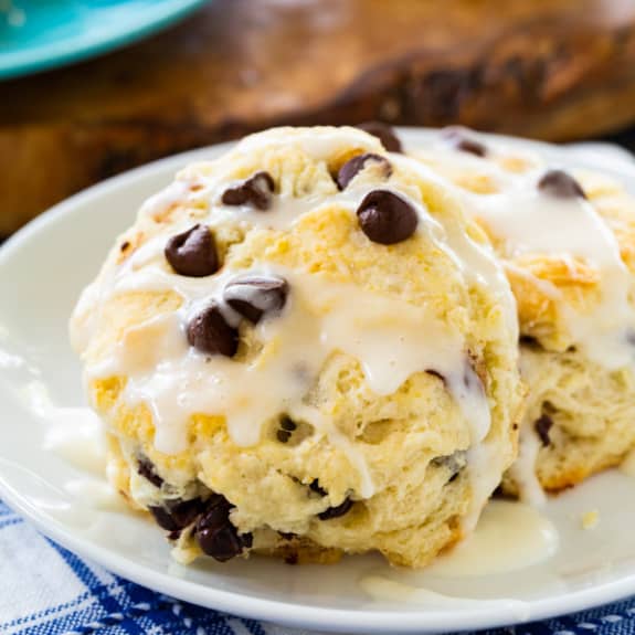 Chocolate Chip Biscuits are tender, light, and full of chocolate chips and topped with a sweet whipping cream glaze. Southern biscuits don't get any more delicious.