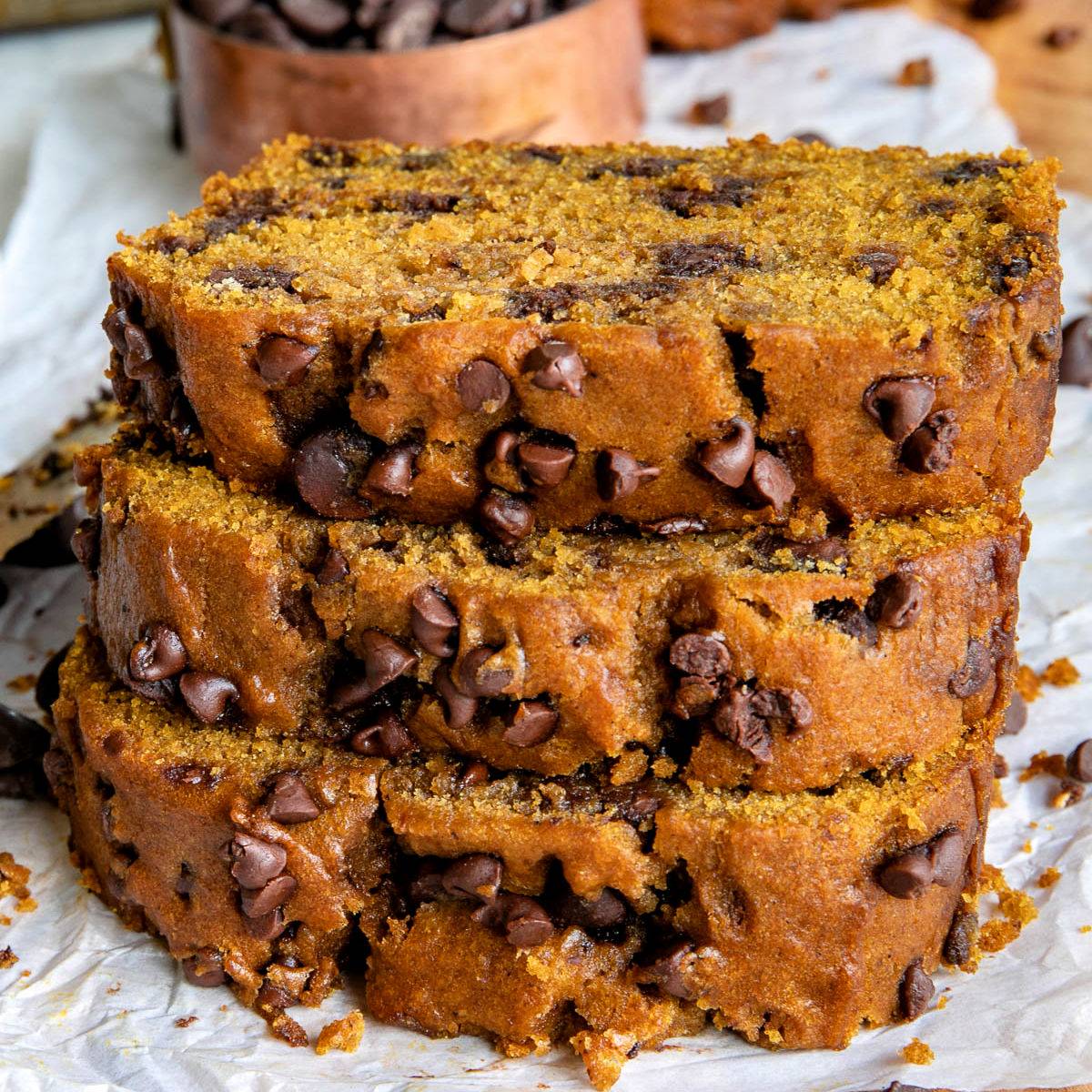 Homemade Pumpkin Bread is extra delicious, supremely moist, and bursting with fall flavors! So easy to make and a guaranteed hit with friends and family this holiday season. Bonus: No mixer needed! This easy pumpkin chocolate chip bread recipe is sure to become a new family favorite.