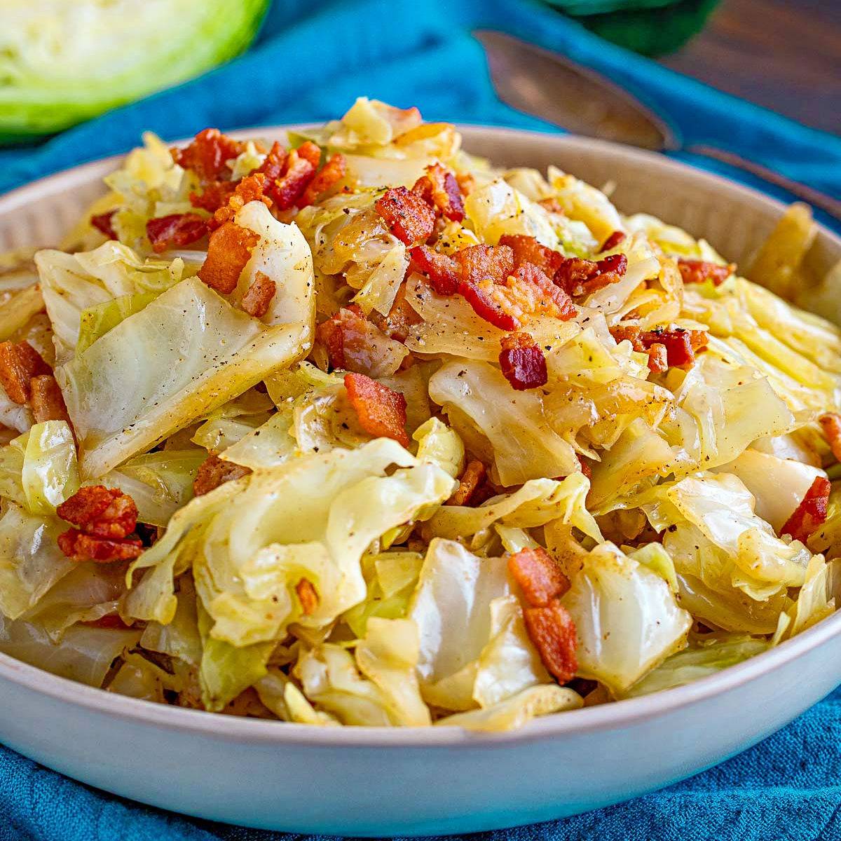 This delicious Fried Cabbage is a quick and easy comfort food side dish that is ready to enjoy in under 30 minutes. Made with bacon, onion and garlic for the most delicious fried cabbage recipe you've ever tried!