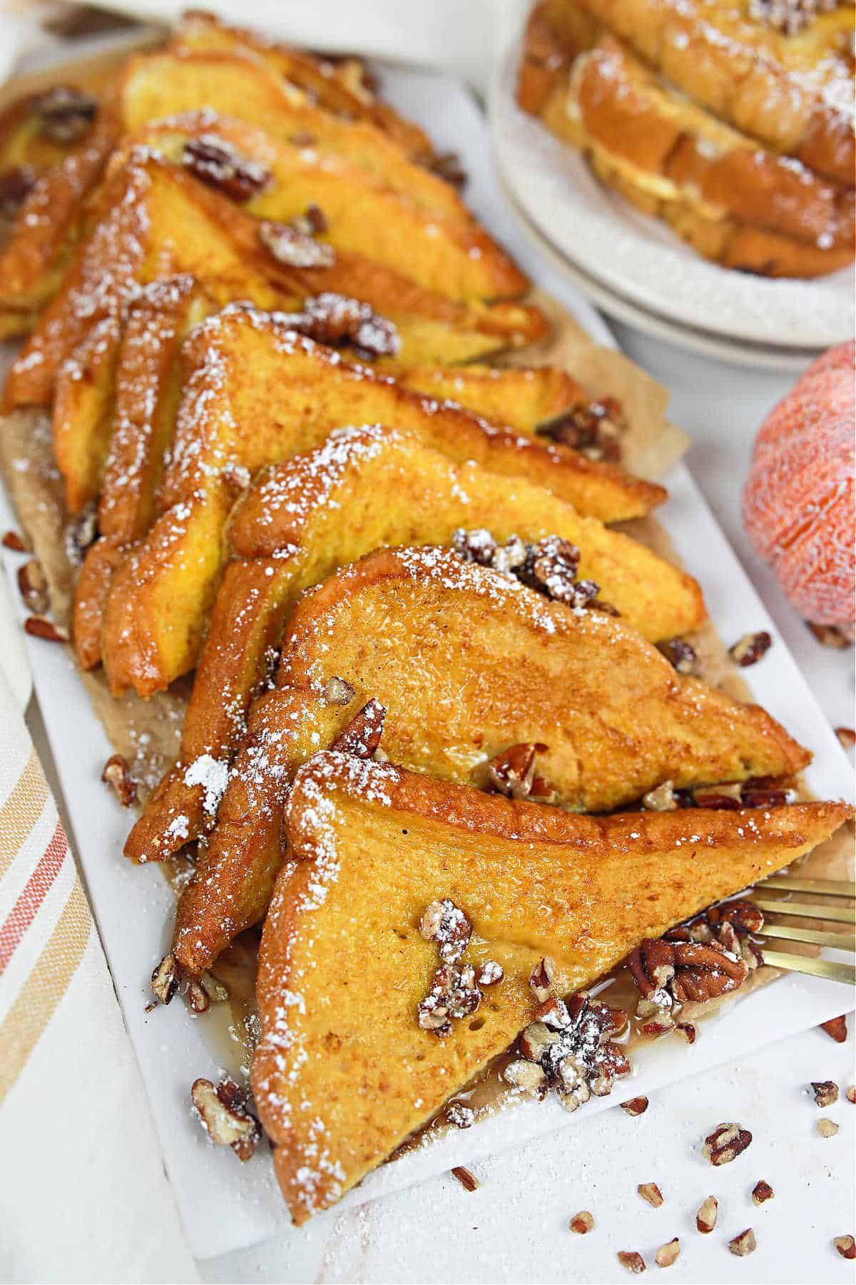 When you're craving the cozy feels of autumn, Pumpkin French Toast is a no-brainer. You'll have breakfast on the table in less than 10 minutes, and even if you're feeding a crowd, clean-up is a breeze.