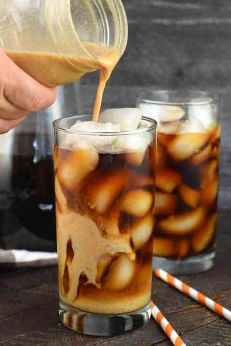 Try this delicious, copycat recipe for Starbucks Pumpkin Cream Cold Brew Coffee at home! You'll love this coffee house inspired drink recipe that is easy to make!
