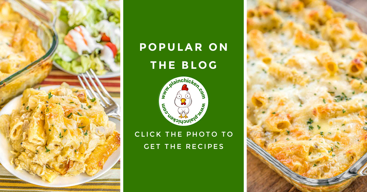 | | Cheesy Chicken Rigatoni – CRAZY good! The whole family cleaned their plates and went back for seconds! Such an easy weeknight casserole recipe! Can make ahead and refrigerate or freeze for later too! Chicken, rigatoni, cheese soup, evaporated milk, heavy cream, garlic mozzarella, and cream of chicken soup. SO good! I wanted to faceplant into the casserole dish!! LOL! |
