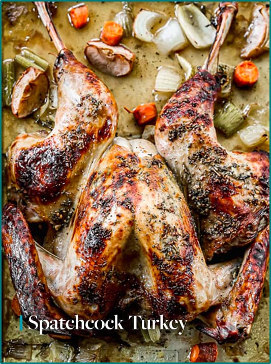 Plus, a spatchcock turkey cooks in a fraction of the time of a regular roast turkey. Many swear that spatchcocking is the absolute best way to cook turkey. If you want to give it a try this year, I've created this recipe and video so you can spatchcock with ease!