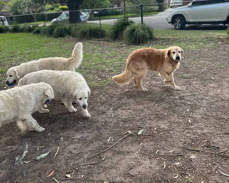 While I'm in Melbourne for the cookbook tour, Dozer is off on a holiday with the Golden Retriever boarder! Here's a photo she sent me of proof of happiness / not missing me at all. Hmph!