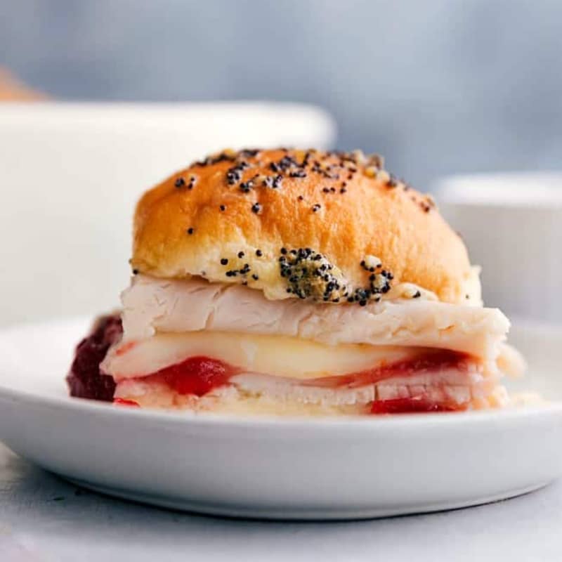 1. Turkey Sliders: Looking for leftover turkey recipes? These leftover turkey sliders with turkey, cheese, cranberry sauce, gravy, and delicious sweet buttered rolls are the BEST!