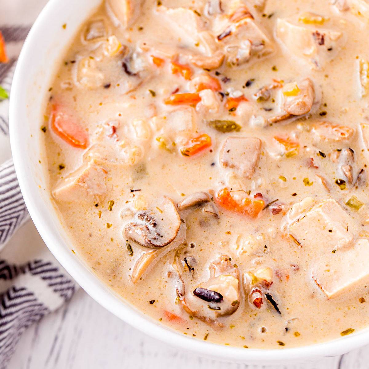 Turkey and Wild Rice Soup is the perfect way to use up leftover turkey! This one pot creamy turkey soup recipe is delicious, comforting, hearty and will fill you right up!