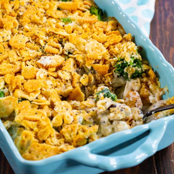 Chicken Broccoli Poppy Seed Casserole is similar to the classic recipe, but with broccoli florets, white rice, and a creamy cream cheese base. With a buttery Ritz cracker topping, this casserole is pure comfort food.
