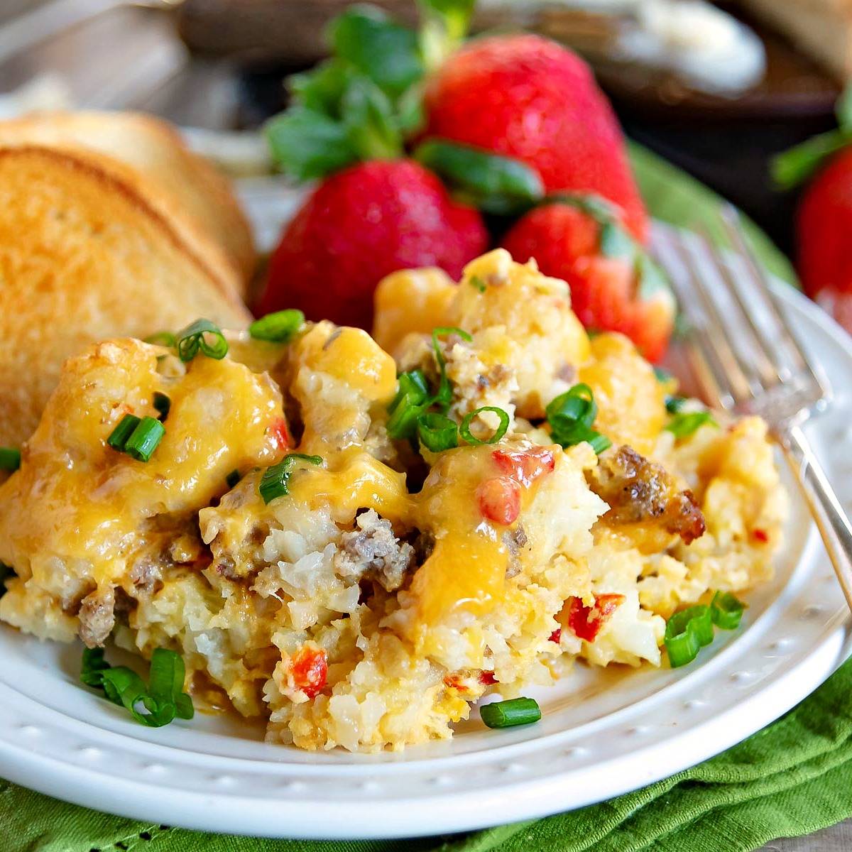 This delicious Crockpot Tater Tot Breakfast Casserole is an easy, comfort food dish that is perfect any day of the week. Loaded with eggs, sausage, cheese and tater tots, this simple breakfast casserole is served up straight from your slow cooker! We love to serve this with our favorite biscuit recipe or these yummy Lemon Blueberry Scones.