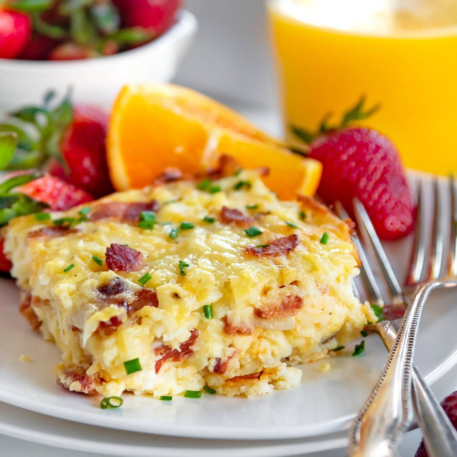 Easy Hashbrown Breakfast Casserole is perfect for entertaining a crowd or serving up a simple weekend brunch. Made with frozen hashbrowns, eggs, bacon, and three different types of cheese, this savory breakfast casserole can be made in advance and is designed to feed a crowd.