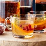 This hot toddy recipe is perfect for cold nights! It's cozy, warming, and bright, made with whiskey, lemon juice, ginger tea, and maple syrup.