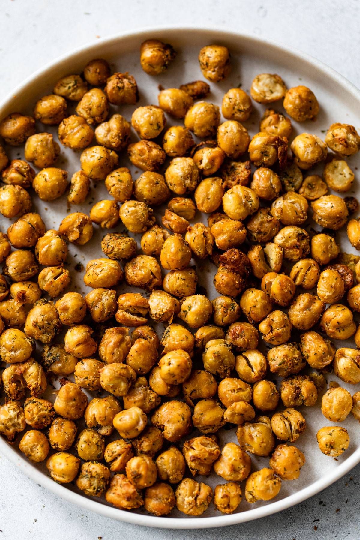 If you love crispy chickpeas, you gotta try making them in the air fryer! Coated in a homemade ranch seasoning then fried without any oil, they're perfectly crispy and delicious on their own, on tacos or in a salad.